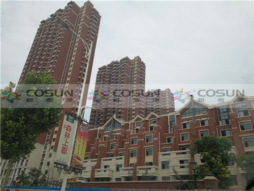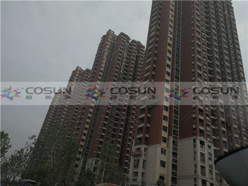 超前涂料 CCTV黃金展位合作伙伴鄭州中建七局森林上郡工地施工面積16萬平方,為了追求高端社區(qū)的需要,能從視覺上彰顯整個(gè)建筑的高雅與莊重之美,選擇了天然真石漆做為外墻專用漆。